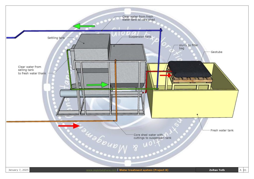 Ze Global designed and implemented an advanced Water Treatment System to improve the efficiency of core cutting operations and reduce environmental impact. This system integrates innovative technologies and sustainable practices to recycle and purify water for reuse, ensuring resource conservation and operational sustainability.